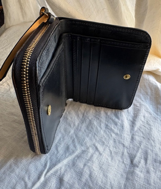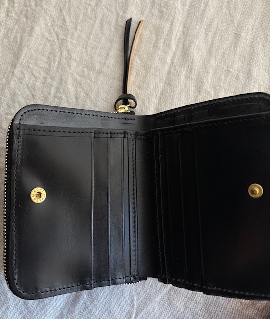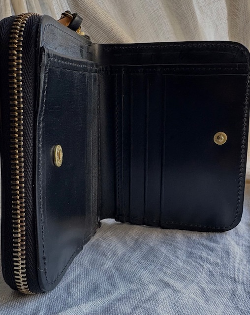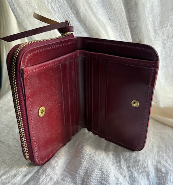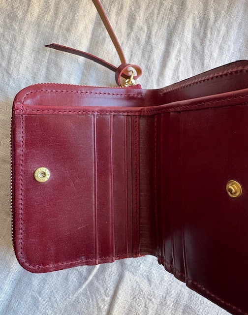 最近のキャッシュレス化の中取り回しやすい小さなお財布をよく見かけるようにはなりましたが、このサイズ/収納力で大人の女性に相応しいきちんとしたレザーのお財布はなかなかないように思います。しかも使えば使うほどに味わい深い経年変化を見せてくれるブライドルレザー製ですから長くご愛用いただけます。通勤のメインのお財布として、必要なものだけのサブのお財布として、贈り物にもおすすめのお品物です。